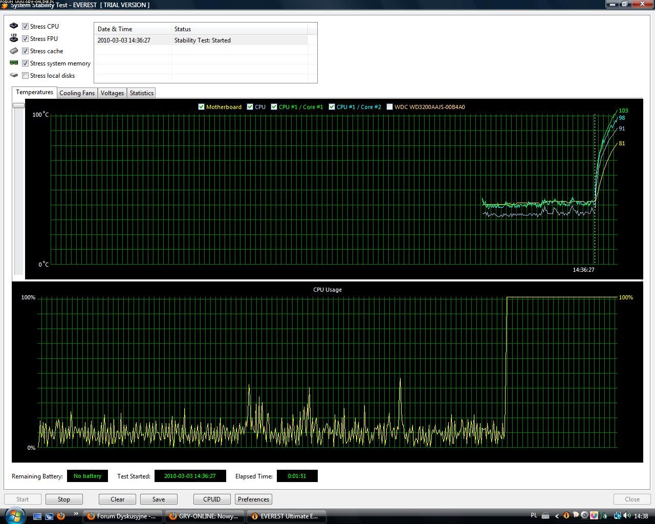 Witam mam problem z procesorem AMD athlon X2 5050e, mierzyłem temperature programem everest ultimate edition i temperatura procka w spoczynku wynosi ok 30-40*C ale w stresie dochodzi do 90*C lub wyżej. Po wyłączeniu programu temperatura bardzo szybko spada. Moje pytanie brzmi jakie jest rozwiązanie tego problemu i czy ktoś jeszcze ma problemy z tym prockiem.