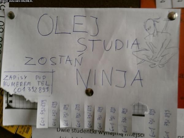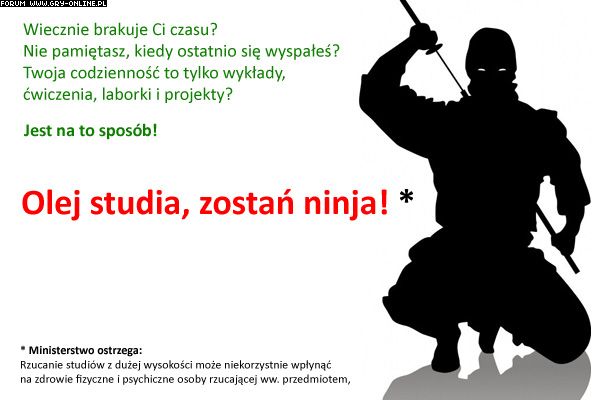 "Olej studia, zostań ninja" ... Widzę, że to hasło nie brzmi jak oryginał :/