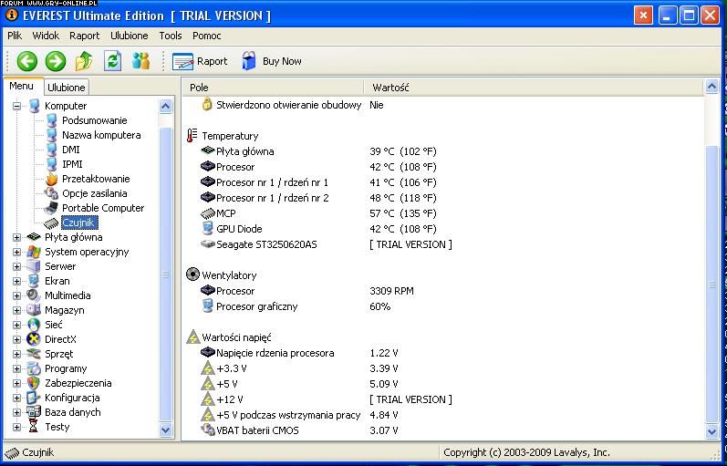 Luzik, mogloby byc kilka stopni mniej na chipsecie i procku (moze wystarczy wyczyscic z kurzu, a moze trzebaby poprawic przeplyw powietrza w obudowie - uporzadkowac kable, dodac jakis wiatrak), ale generalnie wszystko ok.