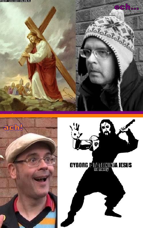Nie wiem, czy wiecie, ale teraz często do podręczników szkolnych - w tym katechizmów - dodaje się płyty CD, na których znaleźć można różne pierdółkowate multimedia związane z przedmiotem. Otóż, pewnego dnia grałem z dziesięcioletnim bratem właśnie w grę dołączoną do katechizmu, nazwijmy ją, "Jezus w labiryncie". Rozgrywka była prosta: należało kierując kursorami na klawiaturze, doprowadzić Jezusa do mety - Królestwa Niebieskiego. Brat bawił się chyba nawet dobrze - chociaż jak mówił - WoW ma lepszą grafikę. Wyszedłem z pokoju, piję kawę i myślę o śmierci, gdy nagle wbiega przerażony brat i wrzeszczy coś w stylu: "Jezus nie może pójść do Nieba, Jezus nie może pójść do Nieba!". Idę sprawdzić, co się stało i okazało się, że gra była tak crapowata, że nie dało się spokojnie Jezusa do Nieba doprowadzić. Utknął gdzieś na ścianie i za cholerę kroków następnych - kroków jakże potrzebnych - postawić nie chciał. Próbowałem Jezusa jakoś odblokować, bo nie chciałem, żeby brat pomyślał, że jest szansa, że Jezus do Nieba nie pójdzie. Nie udało się i brat schował płytę do szuflady. Ostatnio, gdy byłem domu, zauważyłem, że ta płyta nadal leży w tym samym miejscu, schowana.