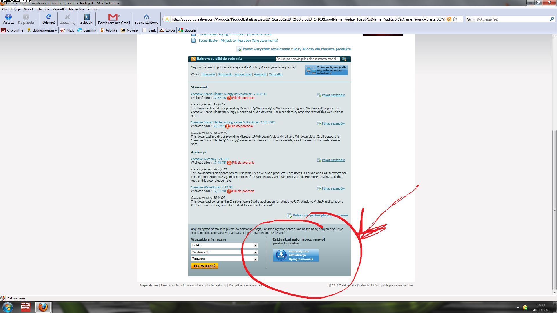 Na stronie producenta szukasz sterowników ręcznie do swojego systemu. Albo możesz próbować automatycznie ---->