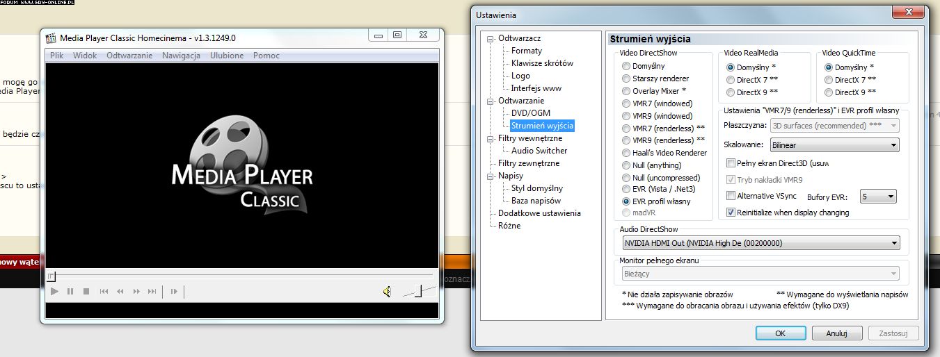 strumień wyjścia ustaw evr custom to napisy będzie czytał
