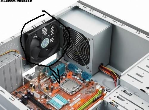 Kolejna sprawa. Na załączonym obrazku zaznaczyłem wiatraczek. Jest on kabelkiem połączony z chłodzeniem (wiatraczkiem) który trzyma się na radiatorze. Czy jest to wina obudowy, którą aktualnie posiadam (konkretniej to komputera, bo jest on kupiony w całości, plombami)? Czy to może boxowe chłodzenie procesora?