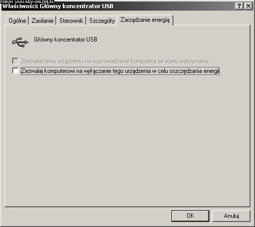 BlackBolt --> Widzę, że w Win7 ta opcja dla wszystkich koncentratorów usb jest domyslnie zaznaczona więc może to coś z tym będzie. Wypróbuję jutro z samego rana.