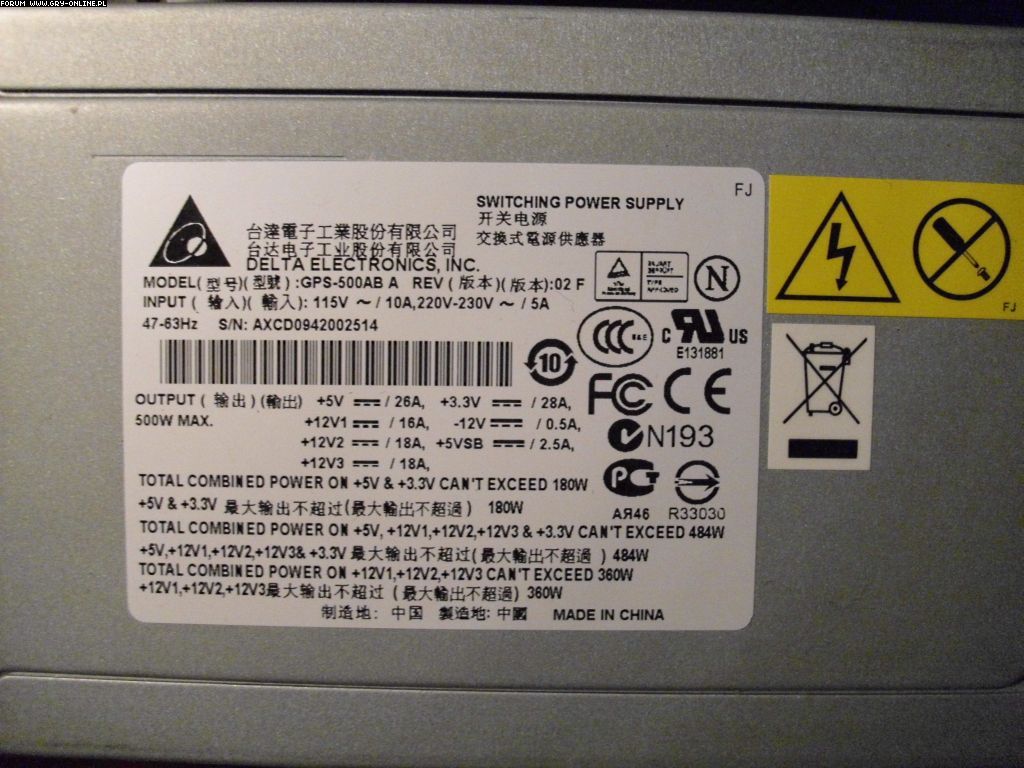 Kupiłem na allegro zasilacz który według sprzedającego nosi nazwę CHIEFTEC&DELTA 500W GPS-500AB-A ,zasilacz na allegro wygląda prawidłowo ale gdy rozpakowałem dość mizerne pudło moim oczom ukazała się taka "tabliczka znamionowa" >>>