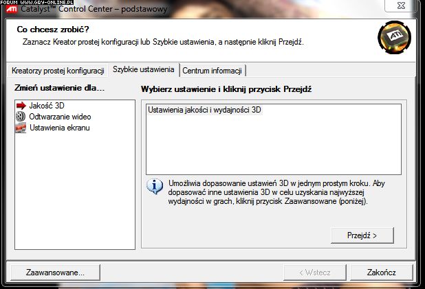 Nie mam ATI więc nie wiem. Na pierwszy rzut oka wygląda na to, że zainstalowane są bardzo stare Catalysty i dlatego CCC wygląda inaczej. Musisz poszukać, nie powinno być trudno, bo widzę, że wszystko jest po polsku. Albo zainstaluj najnowszą wersję.