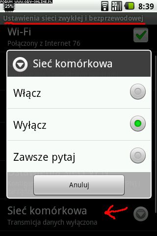 Ale rozróżniaj połączenie z netem przez Wi-Fi (czyli poprzez dostępny access point - operator komórkowy nie ma tu nic do rzeczy) od połączenia przez GPRS itp. (czyli poprzez sieć komórkową, za którą operator nalicza opłaty).