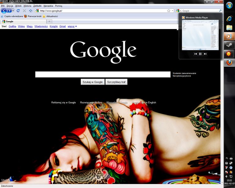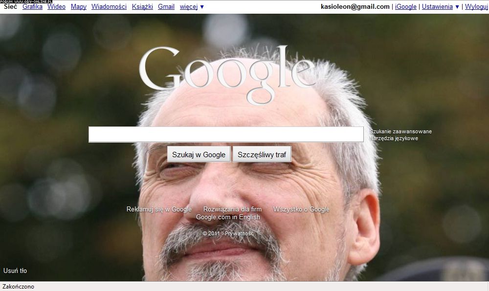 A tła nie mam żadnego, bo w ogóle na gógle nie wchodzą. Od tego mam "pasek wyszukiwarki" w przeglądarce, żebym nie musiał szukać po zakładkach czy ręcznie go wpisywać.