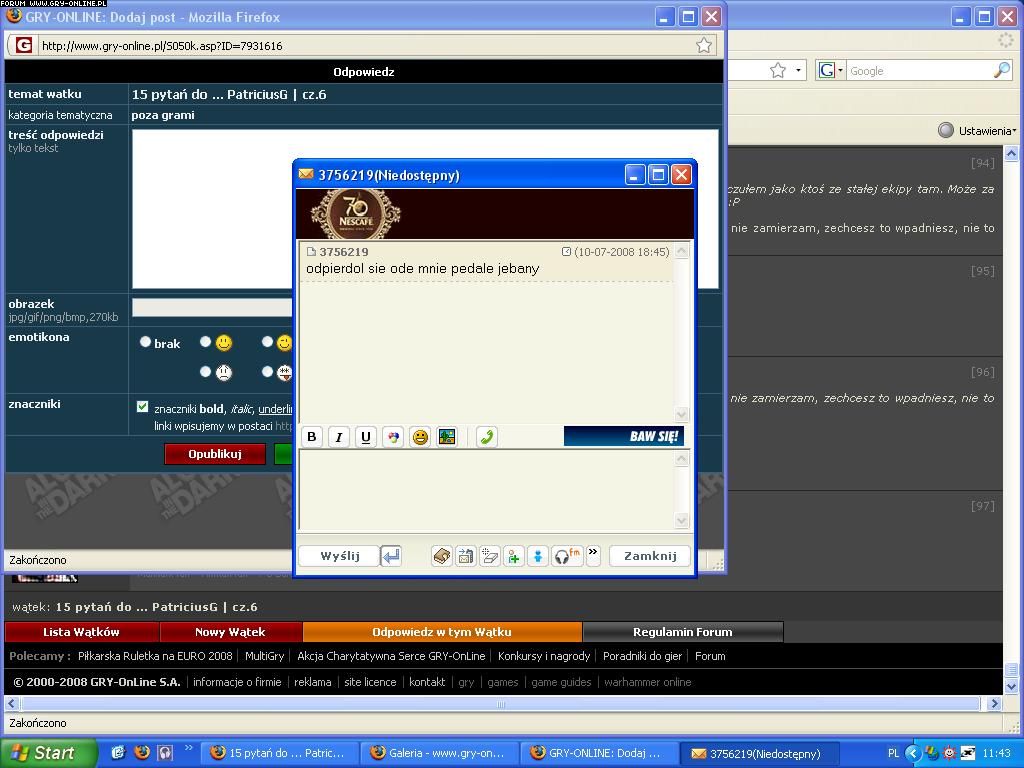Ponadto na forum nie przewyższam poziomu tekstów, które piszę na gg.