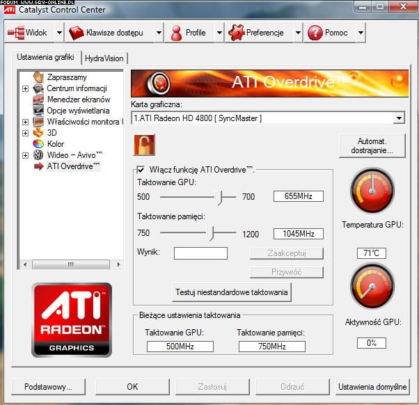 Radeon 4850 , taktowania procesora i pamięci.