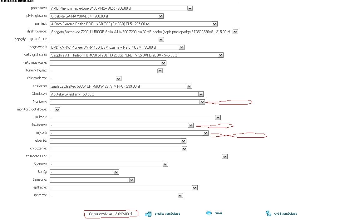 Brak monitora, klawiatury i myszy - zaznaczone na screenie. Niestety nie wiem, czy chcesz kompa do 2k razem z monitorem, czy sama jednostke centralna (przyjalem to drugie zalozenie).