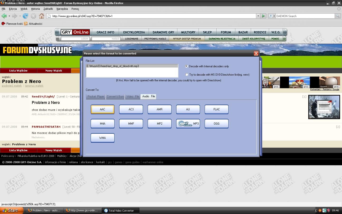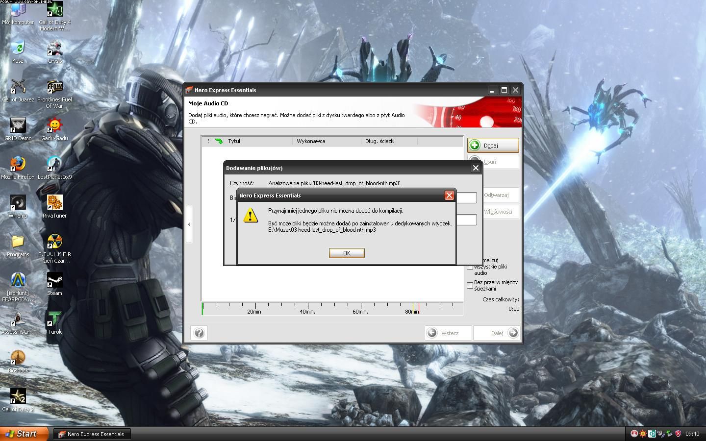 No albo tak jak widac na zalaczonym obrazku - brakuje jakiejs wtyczki. Jesli Nero faktycznie konwertuje mp3 na audio przy nagrywaniu to reinstalacja programu powinna pomoc.