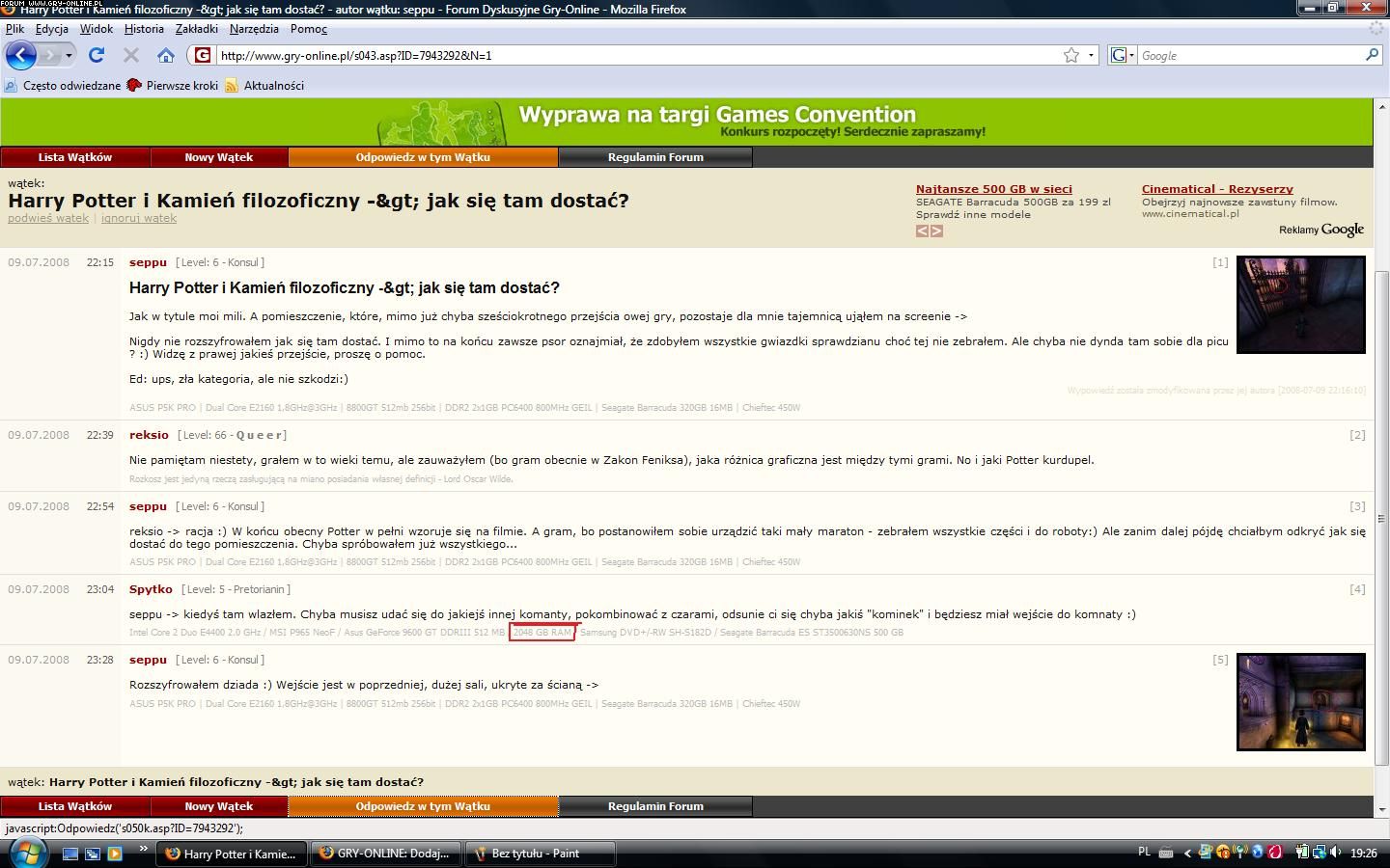 reksio -> racja :) W końcu obecny Potter w pełni wzoruje się na filmie. A gram, bo postanowiłem sobie urządzić taki mały maraton - zebrałem wszystkie części i do roboty:) Ale zanim dalej pójdę chciałbym odkryć jak się dostać do tego pomieszczenia. Chyba spróbowałem już wszystkiego...