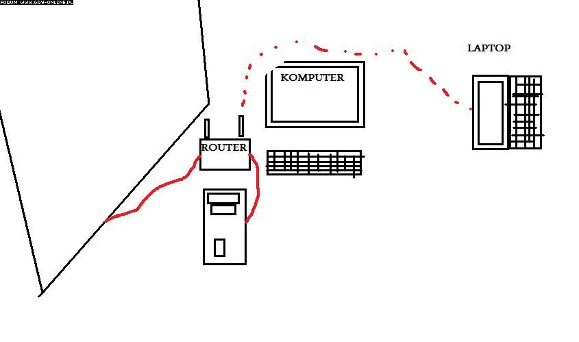 Rozpisz lub rozrysuj jak masz wszystko połączone względem siebie (komputer router i modem do netu)