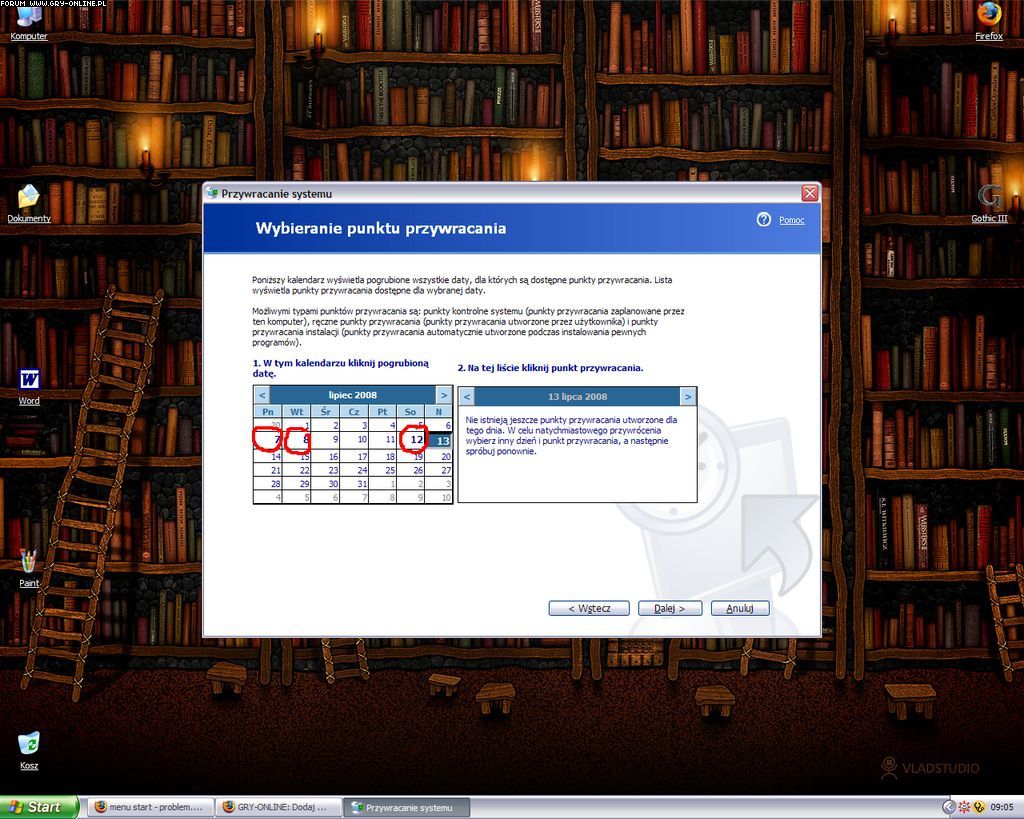 Najprostszym rozwiązaniem tego problemu jest przywrócenie systemu. Należy wybrać punkt przywracania z kalendarza gdy komputer działał dobrze.