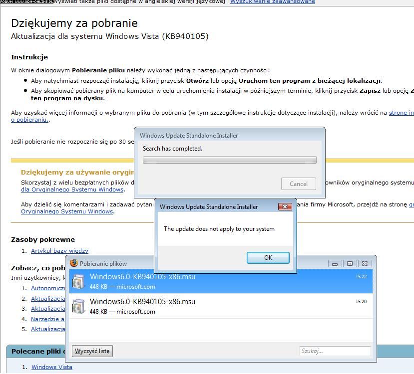 sprawdziło legalność systemu pobrałem tą na viste 32 bo taką mam i nic...