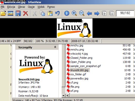 Otwieram plik JPEG w dowolnej przeglądarce bądź edytorze rastrowym - jak widać na obrazku, kawałek obrazu został usunięty (edytowany). Jednakże - gdy się kliknie na plik (zaznaczy go w systemie) to w polu Szczegóły - System Windows wyświetla... Cały plik.