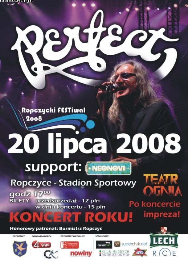 20 lipca w Ropczycach odbędzie się koncert Perfectu na "Stadionie sportowym" :) Mam pytanko - czy są jeszcze bilety i gdzie można je nabyć, bo mam zamiar wybrać się z moją Dziewczynką :)