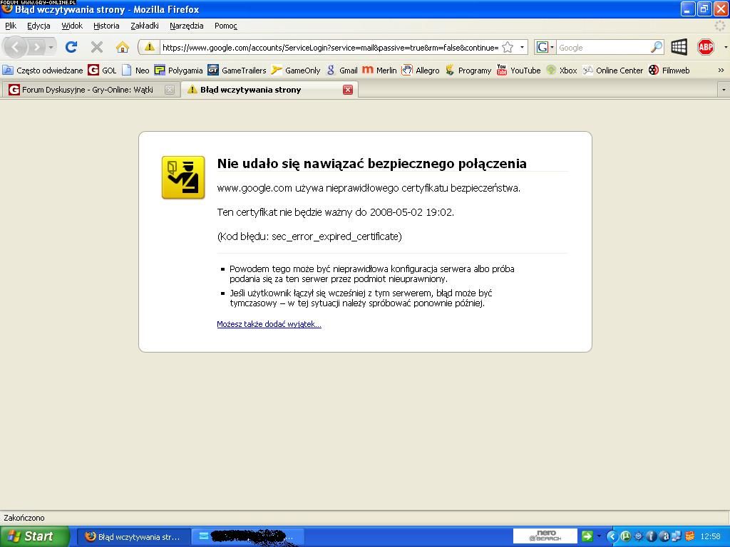 www.google.com używa nieprawidłowego certyfikatu bezpieczeństwa.