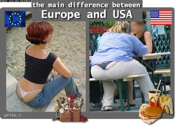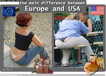 Witam. Poszukuje obrazków które pokazują różnice między Amerykanami a Europejczykami. Mam namyśli to, że oni obżerają się tymi fat foodami bardziej niż my. Z góry dzięki :).