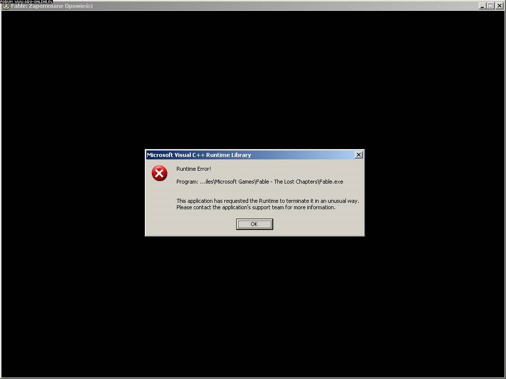 Runtime Error! C:\Program Files\Microsoft Games\Fable - The Lost Chapters\Fable.exe