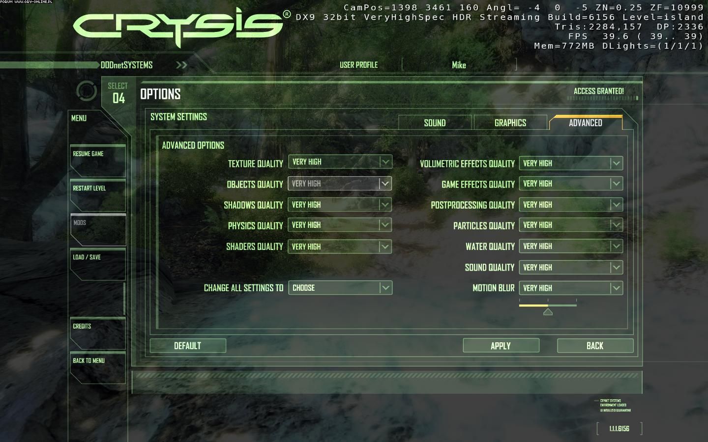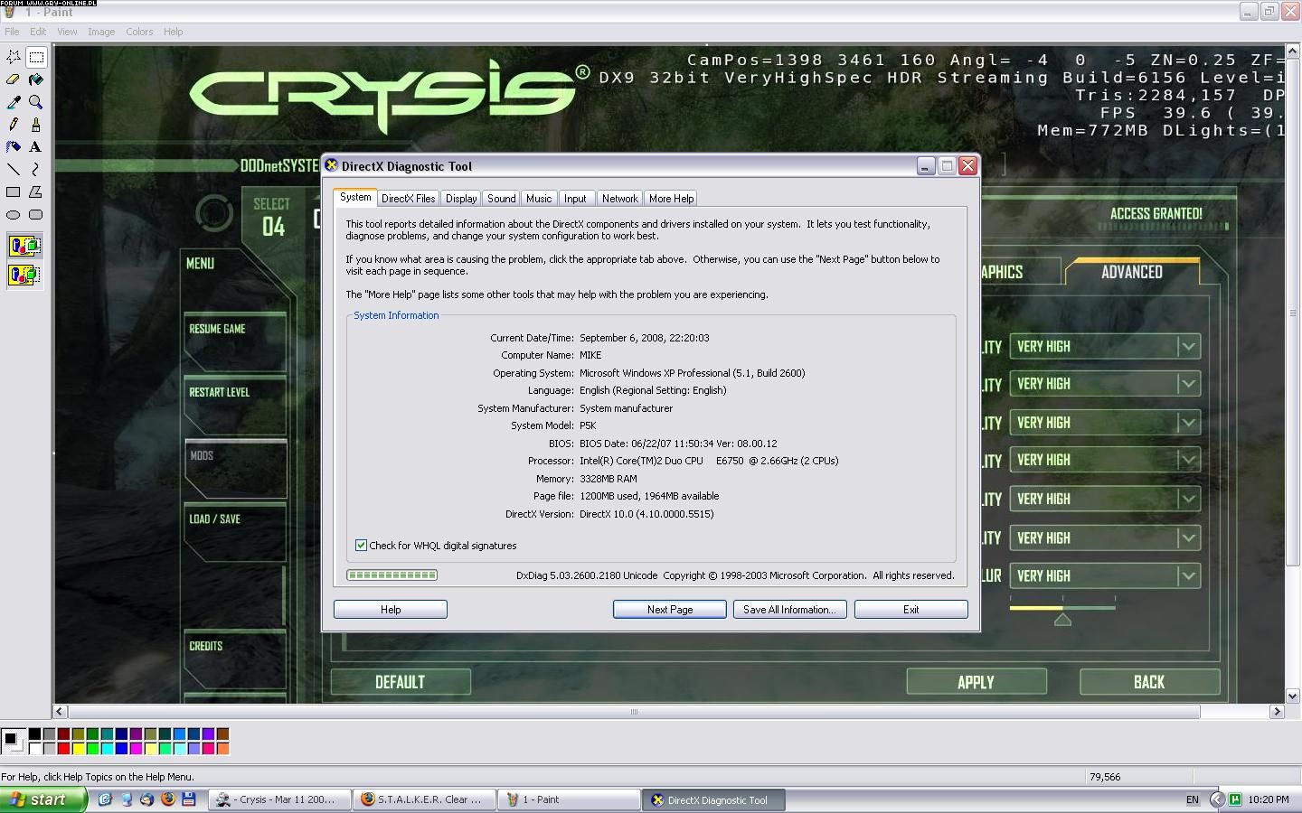 Owszem, do Crysisa wyszedł "mod" który umożliwiał odblokowanie m.in wyższej jakości tekstur, oraz paru bajerków - Jednak NIE BYŁ to pełny zestaw efektów, które oferuje DX 10 : )