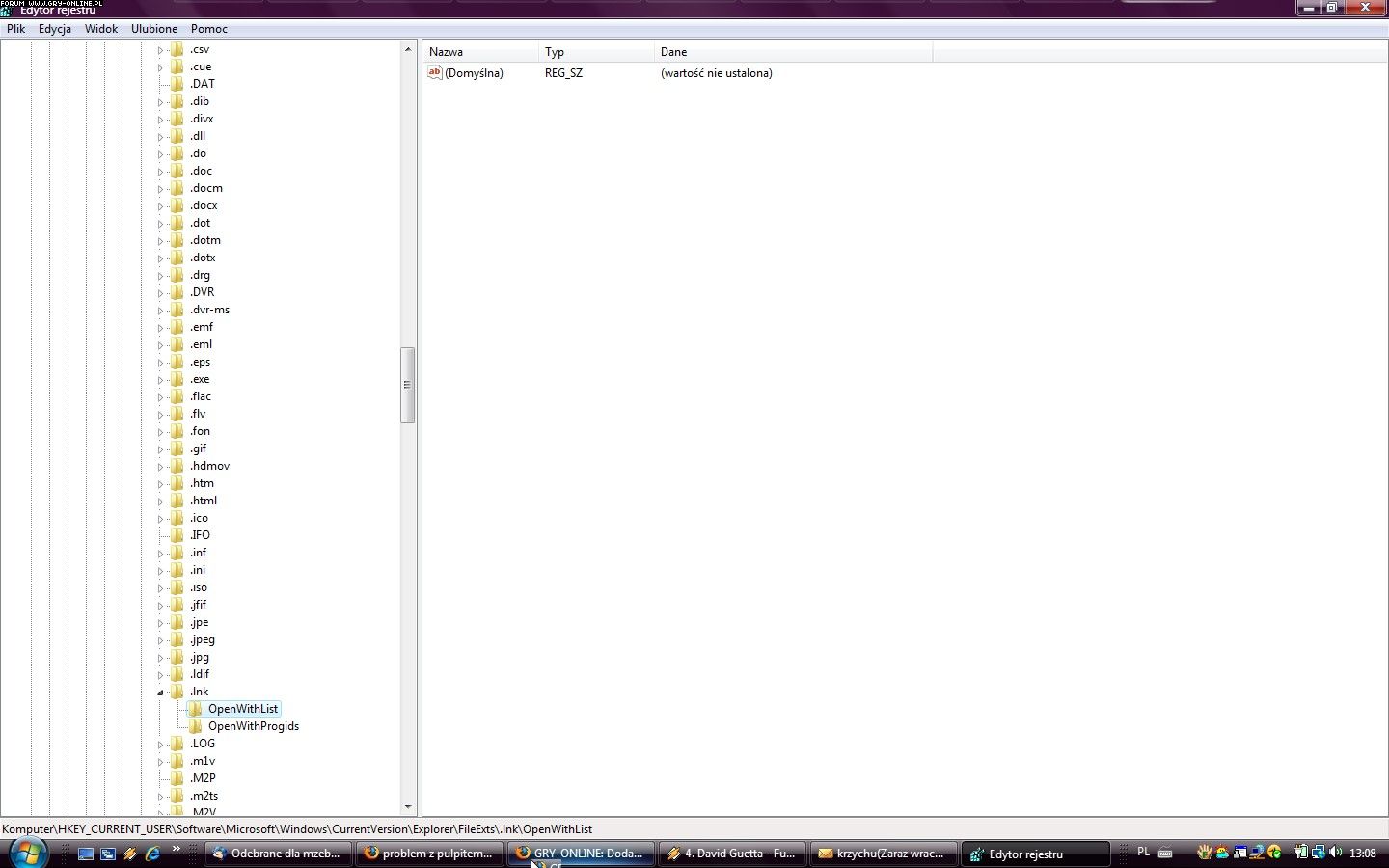 HKEY_CURRENT_USER \ Software \ Microsoft \ Windows \ CurrentVersion \ Explorer \ FileExts \ .lnk