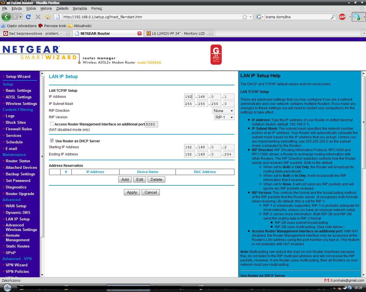 Radzik--> Możesz podać numer jakiegoś komunikatora? Bo widzę że tego tak nie rozwiążemy. Jestem zalgowany że tak powiem w routerze tylko gdzie szukać tych wartości DHCP? WAN setup czy gdzie indziej?