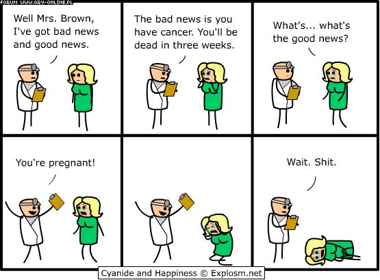 2. Złe są takie, że ma pani raka. Umrze pani za 3 tygodnie.