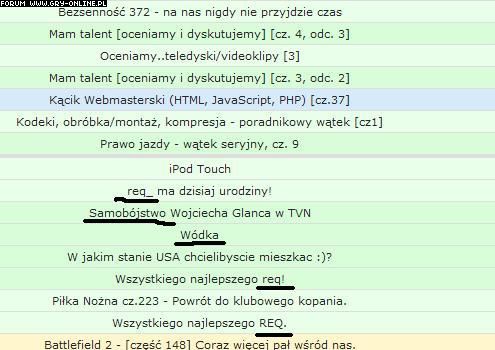 pustawo jednak -> w sensie, ze tylko Ty. urodziny reqa minely z wielkim hukiem, pozostaly wspomnienia, ehh :P. prezencie od bezsennych powinien dostac mozliwosc zrobienia watku nr 373