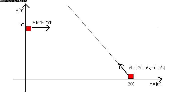 Sax=Vax * t gdzie Vax=14 m/s, Sax to droga jaką pokona lodka A po kierunku X