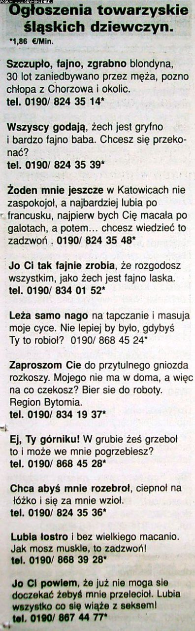soul100rm ==> To chyba ogłoszenia z jakiejś niemieckiej gazety dla onanistów. Chciałem zadzwonić, ale tam piszą, że to kosztuje prawie 2 ełro za minutę. :(