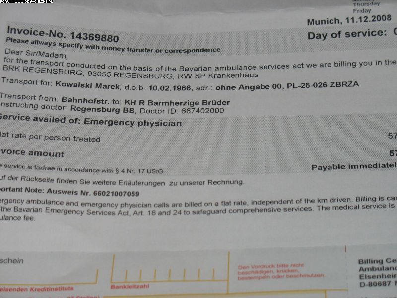 Każą płacić za karetkę. :) Więc jak żaden Kowalki Marek wtedy karetką nie jeździł, to olej.