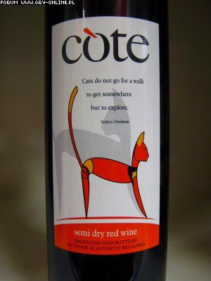 U nas największą popularnością cieszą się zdecydowanie wina bułgarskie. Wszędzie można dostać wina o nazwach Kadarka czy Warna. Nie lubię słodkich i półsłodkich dlatego w tych markach nie gustuję, ale wiem, że to dosyć popularne produkty u nas. Zresztą Cote z obrazka to też wino bułgarskie, półwytrawne czerwone i dosyć przyjemne w smaku.