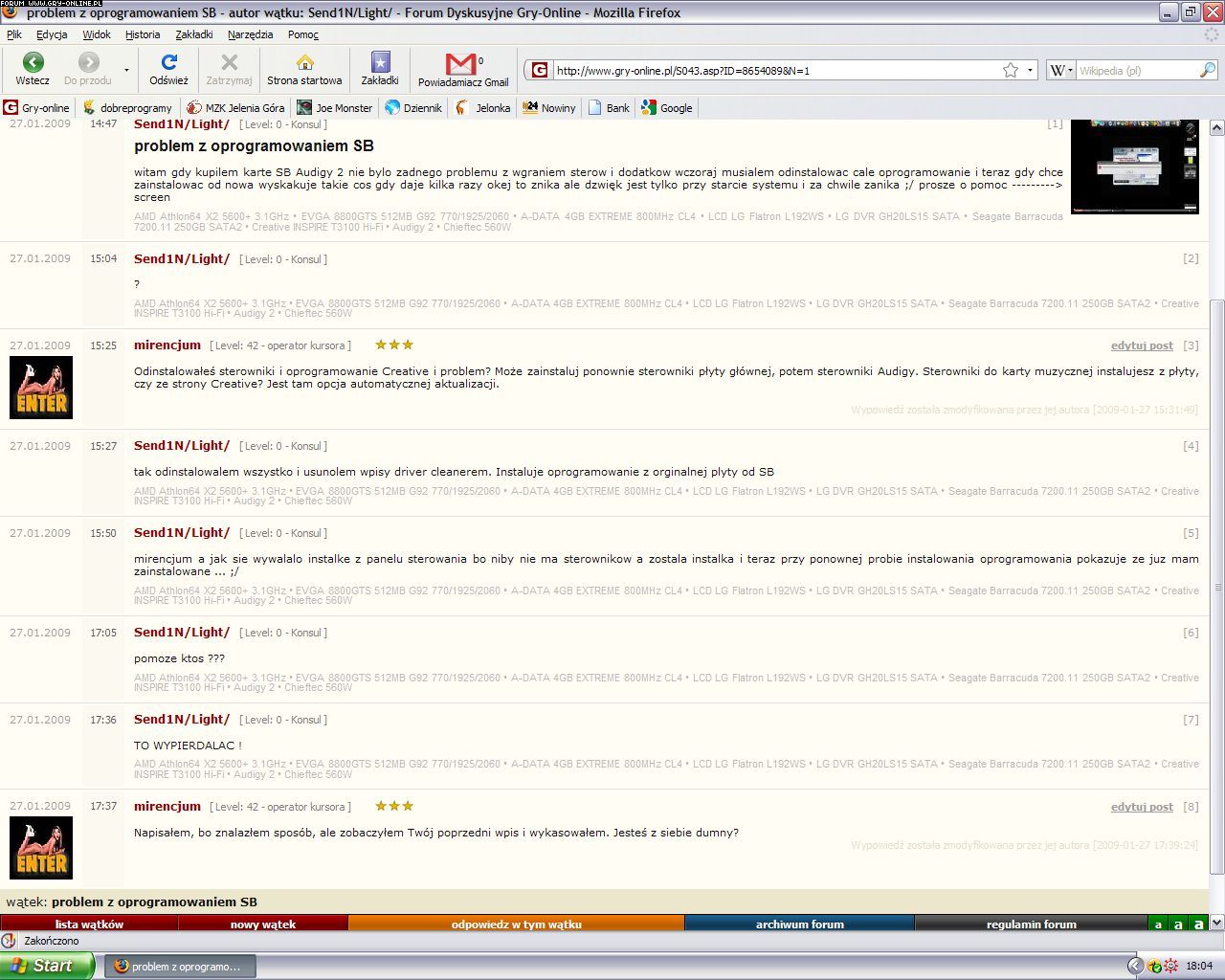 no ale jesli ktos wali posta 'komputer mi nie dziala!!!!!!!!1111' i tyle, to nie ma co sie dziwic, ze jest jechany...