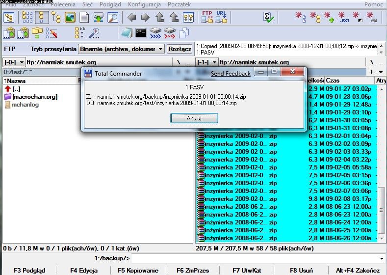 Zauwazylem że jak przeglądam katalogi na ftp to nie mogę używać niektórych operacji w obrębie ftp, np. kopiuj-wklej. Bedąc na serwerze nie mogę zaznaczyc kilku plików, wybrać 'kopiuj', przejsc do innego katalogu na serwerze i wybrac 'wklej'. Natomiast jesli kopiuje z mojego domowego komputera na serwer - wówczas jest ok.