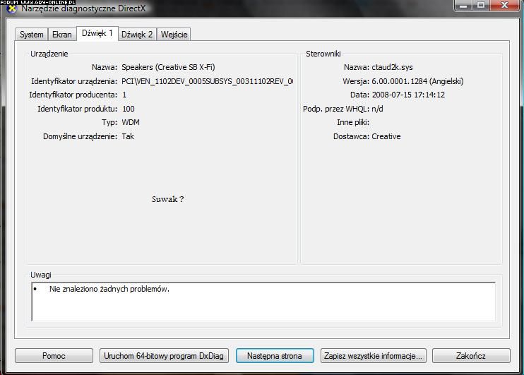 Wejdź w start>uruchom>dxdiag>enter>dźwięk> wyłącz tam przyspieszenie dla dźwięku i spróbuj.