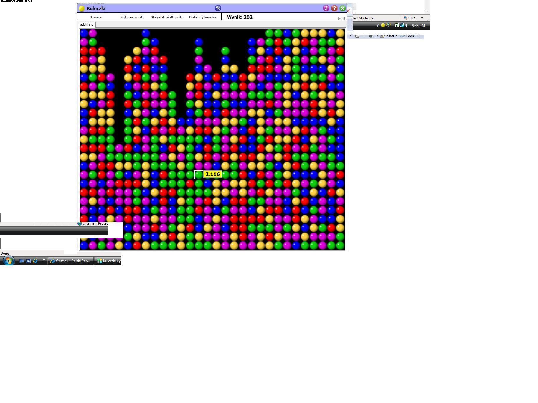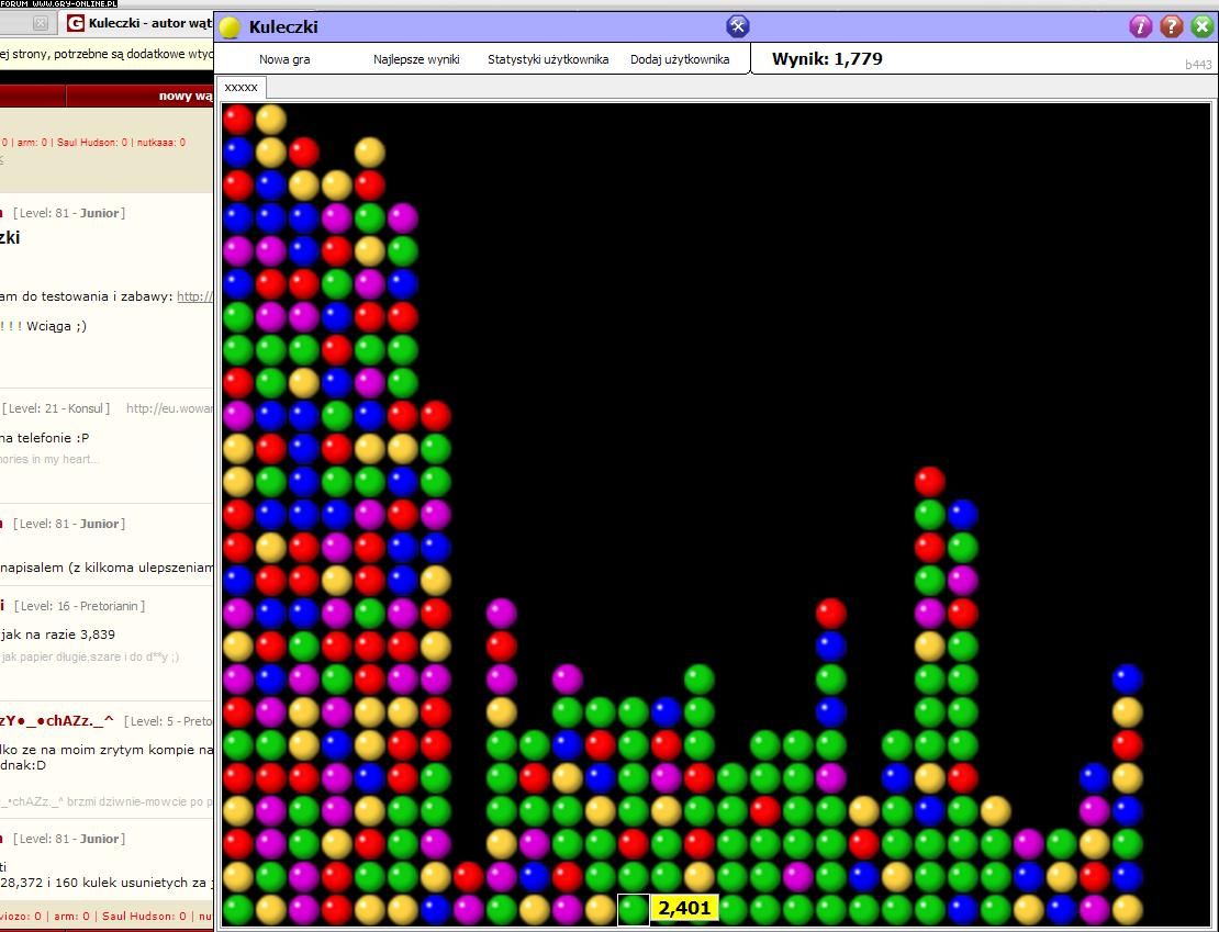 Szafran - fajna gra na kilka raz,y ale po paru razach liczenie kiedy wyjdzie o te 4-5 kulek na raz lepiej robi się powoli nudne :) Te xxxxx w wynikach online to jak coś ja, miło że rozwijasz grę może później wrócę - ale gratulacje za umiejętność stworzenia czegos ;)
