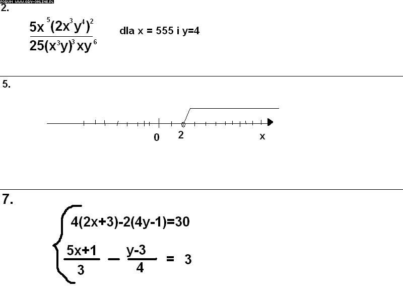 2. Oblicz wartość wyrażenia dla x=555 i y=4 (na zdjęciu).