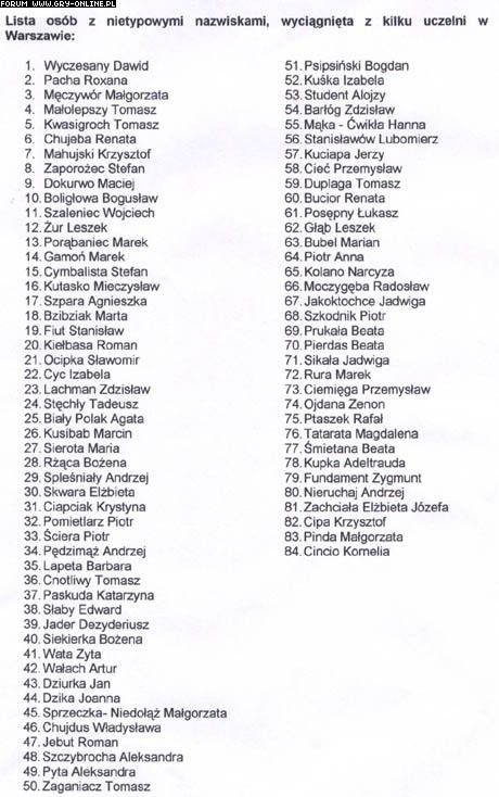 ^^^ Jest to dowód na to, że witryna jak najbardziej nie kłamie. Można porównać nazwiska :D Lecz z jednym na pewno się nie zgadzam. Nazwisko "Archeminiwiriłokotoczerepepenczewiczakowski" jest przecież niemożliwe :D
