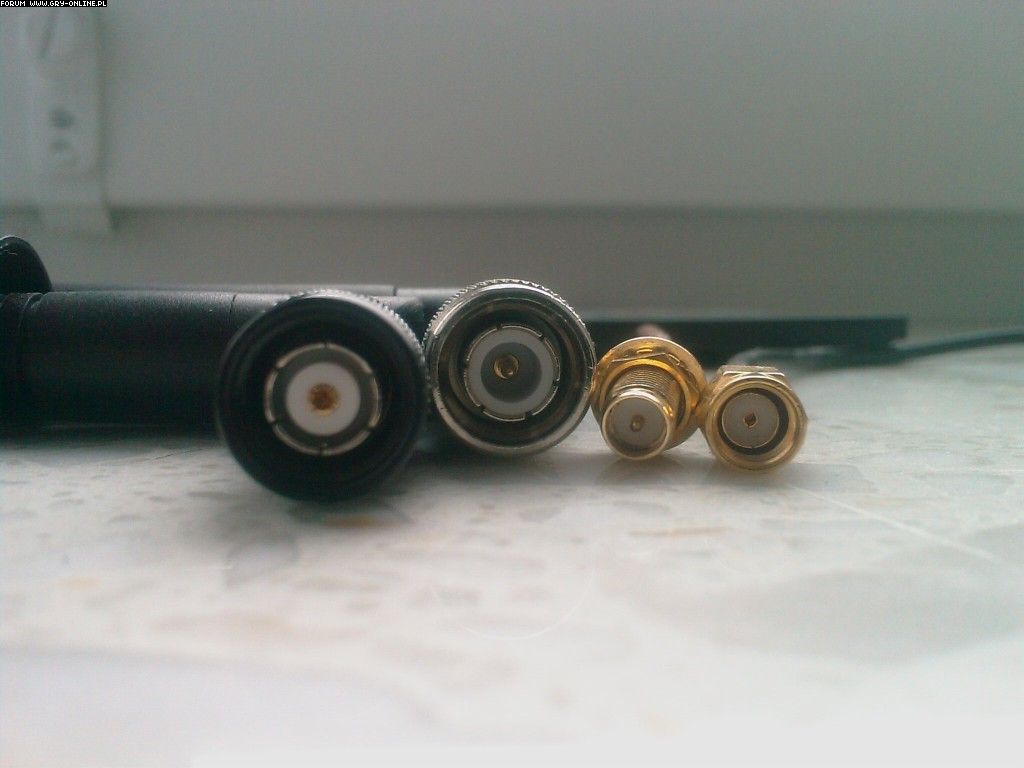 Wtyków do anten jest cała masa. Każdy występuje w dwóch wersjach do tego (męskiej i żeńskiej). Standardowo w routerach montuje się chyba gniazda TNC. Chyba wersja żeńska. Najlepsze wersje dookólnych "patyków" mają zysk zazwyczaj 12 dBi.