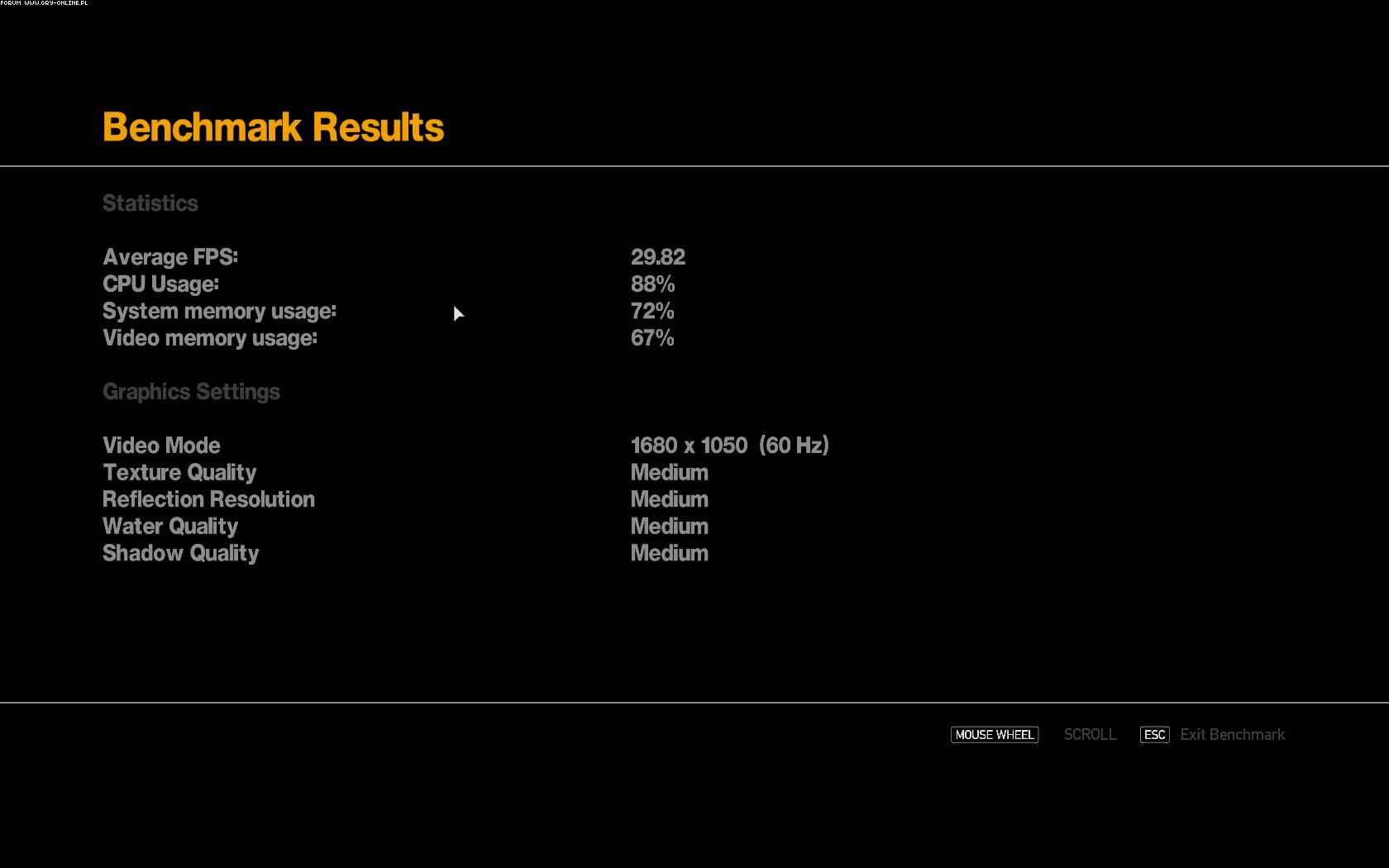 U mnie wszystko na najniższych + 800x600 zżera 203Mb, więc nie mam możliwości ustawienia nawet na 1280x1024 a co dopiero 1680x1050 to też wydaje mi się że wszystko na najniższych + 1680x1050 zżera jakieś około 300Mb lub więcej.