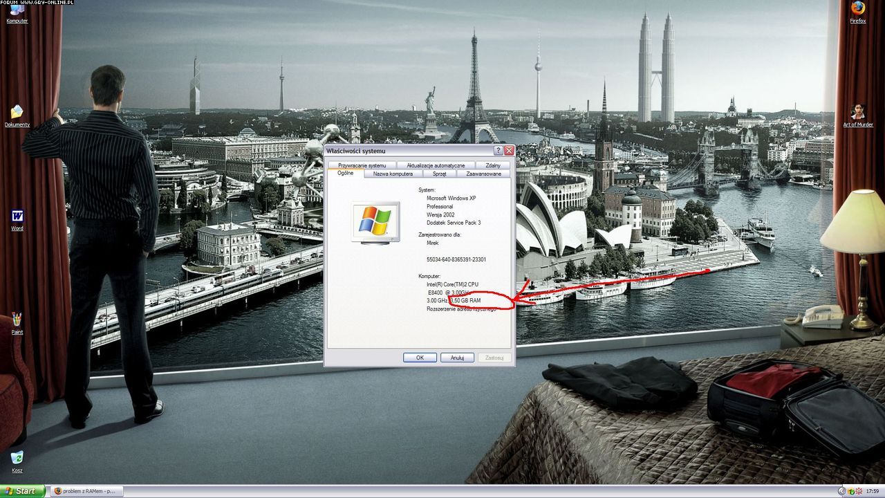 mam Windowsa XP, czyli mam 3,5 Gb a nie 4 ? hmm to chyba sprzedam jedną kość i dokupie 1 GB