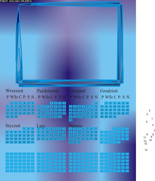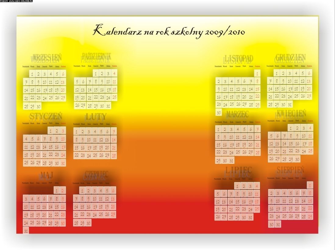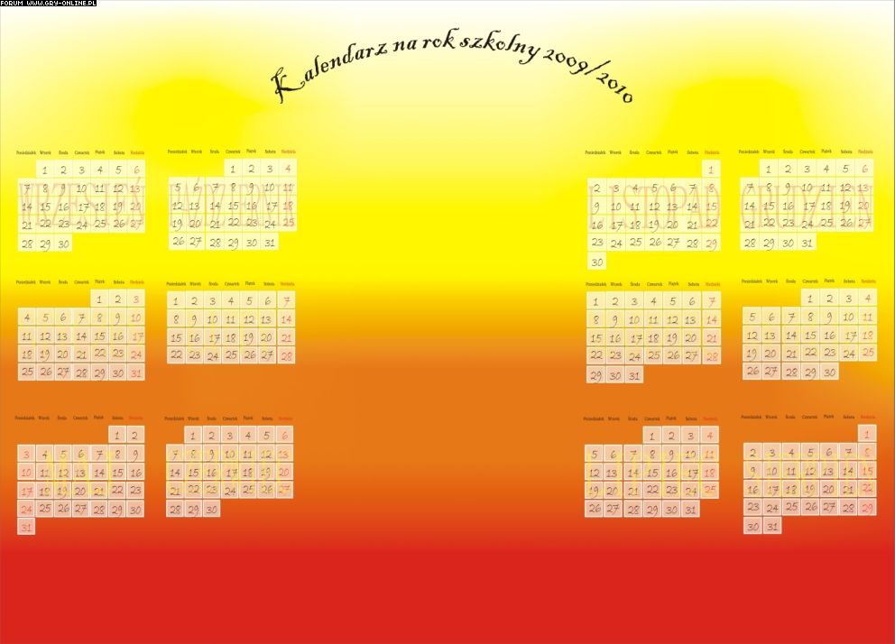Muszę zrobić kalendarz na rok szkolny 09-10 - ma mieć on formę kalendarza kominiarskiego - wszystkie miesiąca na 1 kartce - i miejsce na bodajże karykaturę nauczyciela