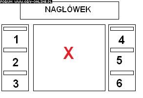 Jeśli się uczysz htmla, to najlepiej jak sobie to zrobisz najpierw na tabelkach. Stwórz tabelkę według twojego wzoru i kopiuj ją do następnych stron które potrzebujesz zmieniając tylko zawartość komórki X. Jak już to opanujesz to polecam CSS i zrobisz to porządnie DIVami.