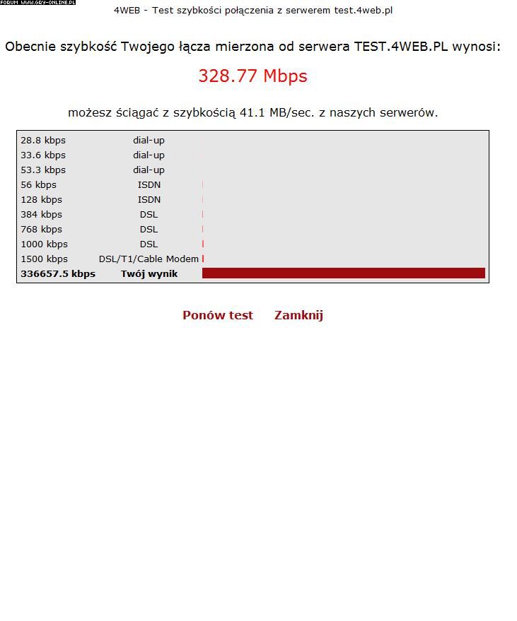 Czyli pewnie potrzebne jest łącze szybsze niż 1 Mbit ale wystarczy wolniejsze niż 10 Mbit. Może jutro sprawdzę na 4 Mbit ;P