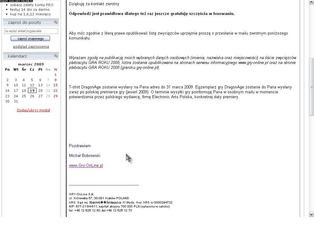 Więc sądzę, że jeśli ktoś nie dostał żadnego maila to nie ma co się łudzić, że wygra.
