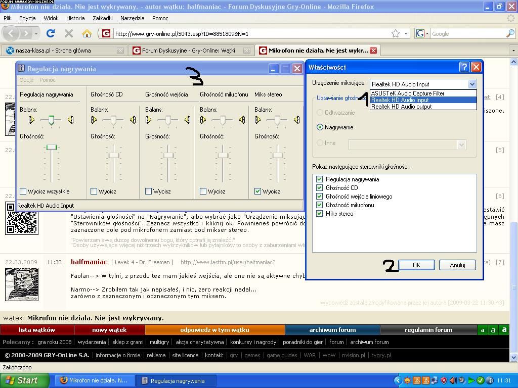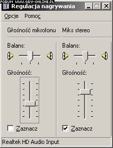 Mam tam coś takiego jak "głośność mikrofonu" i "regulacja nagrywania" i inne też są, ale to chyba nieważne akurat, zresztą nic nie jest wyciszone. Tak więc nic nie jest już wyciszone, ale mikrofon dalej nie działa. No chyba, że coś źle zrobiłem.