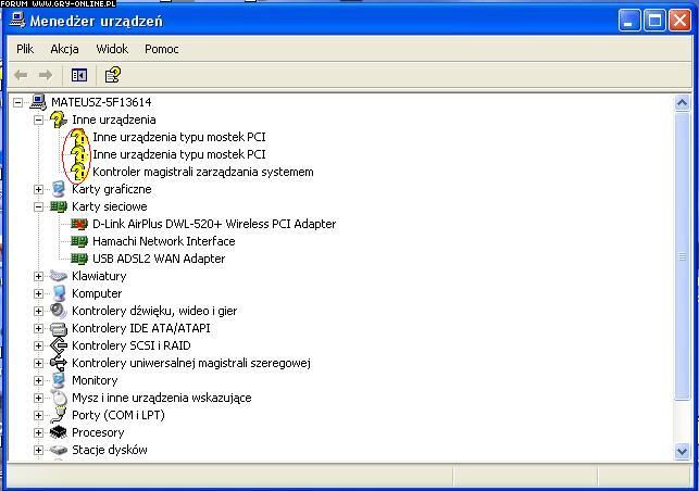Mi to wygląda tak, jakby sie wejście przy kompie po prostu zepsuło. Bo nawet jak się wkłada tą wtyczke to powinien być komunikat, że podłączone nowy sprzęt a u mnie nic sie nie dzieje. Chyba, że to kwestia jakiś sterowników. W menedżerze urządzeń pokazuje mi sie takie coś, tez nie wiem za bardzo o co chodzi z tymi mostkami PCI -->