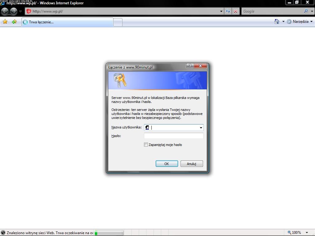 Należy podać Nazwę i hasło by się zalogować na serwer.